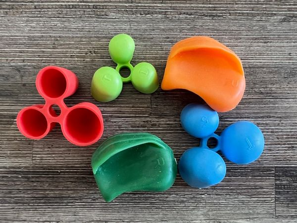 This activity bag includes a pop-it, a bag with pom-poms, a plastic tweezer and 4 colour cards. Use the tweezer to place the pom poms into the pop-it so that it matches the colours on the colour cards. This activity is ideal to help develop fine motor and visual perceptual skills!